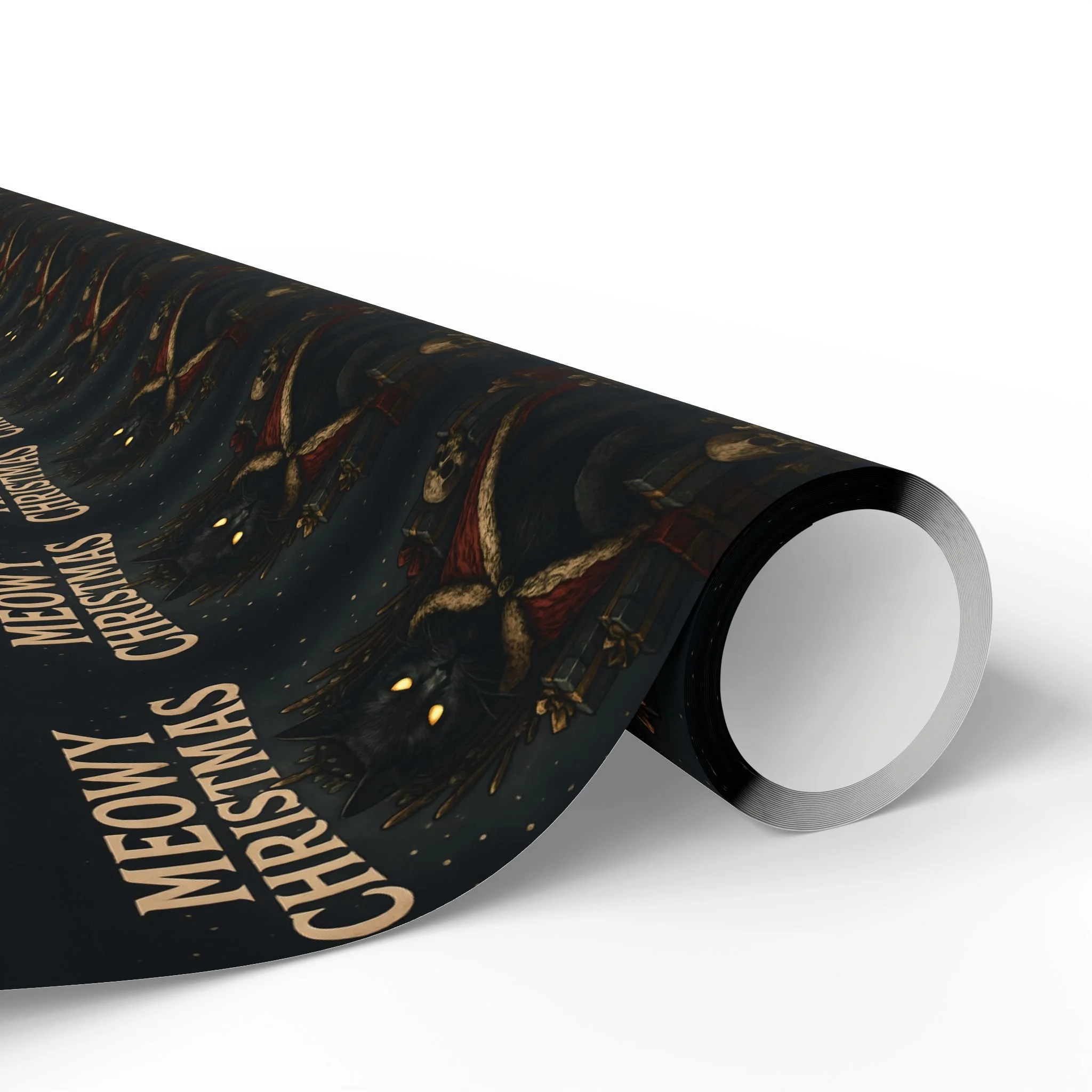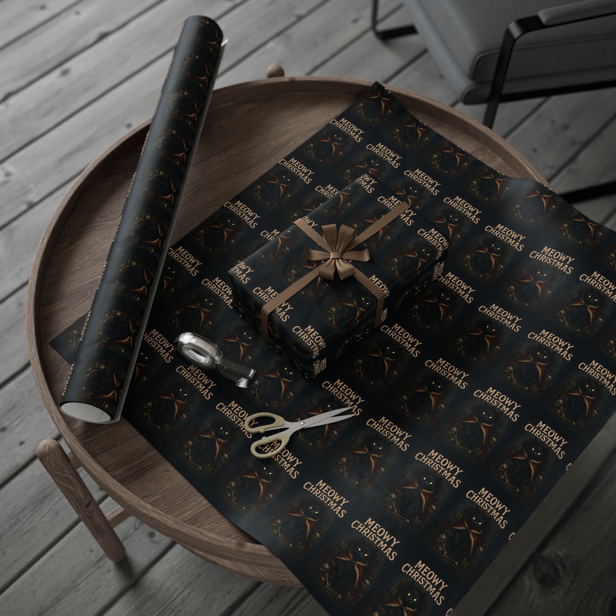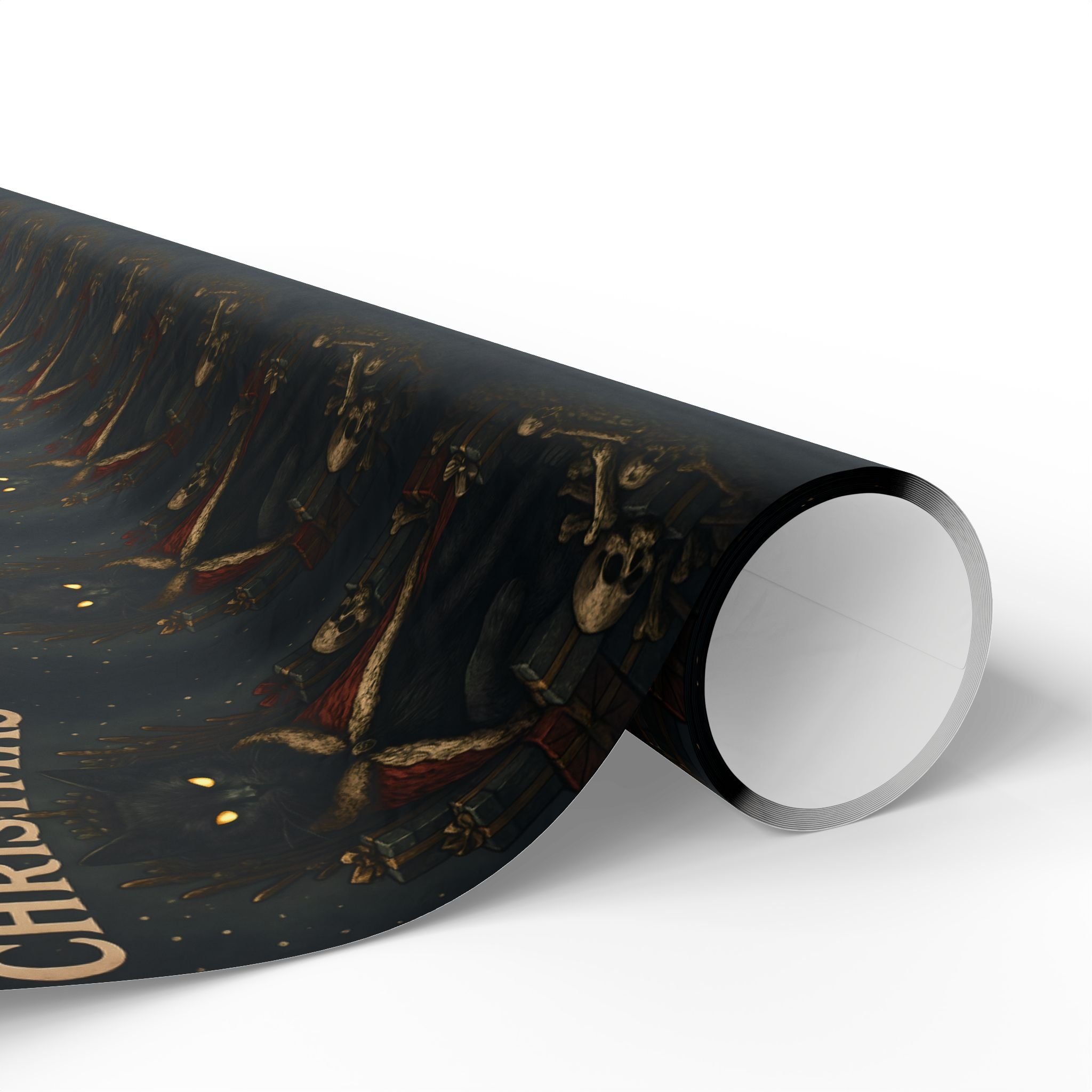 This wrapping paper brings a playful, cozy twist to holiday unwrapping. Deep, velvety blacks and warm, vintage-gold lettering set off sleepy cat illustrations wearing tiny Santa hats, creating a quietly cheeky mood that feels both nostalgic and modern. The one-sided print on 90gsm fine art paper lays smoothly around packages, and your choice of glossy or matte finish lets you dial the sheen to match the moment — a soft matte for an understated, library-like holiday or high gloss when you want the colors to pop under twinkling lights. Rolls come in three lengths to cover small treats or long, narrow parcels, and the subtle white trim with barcode is discreet at the edges. This paper fits into calm, intimate gatherings where detail and personality matter.