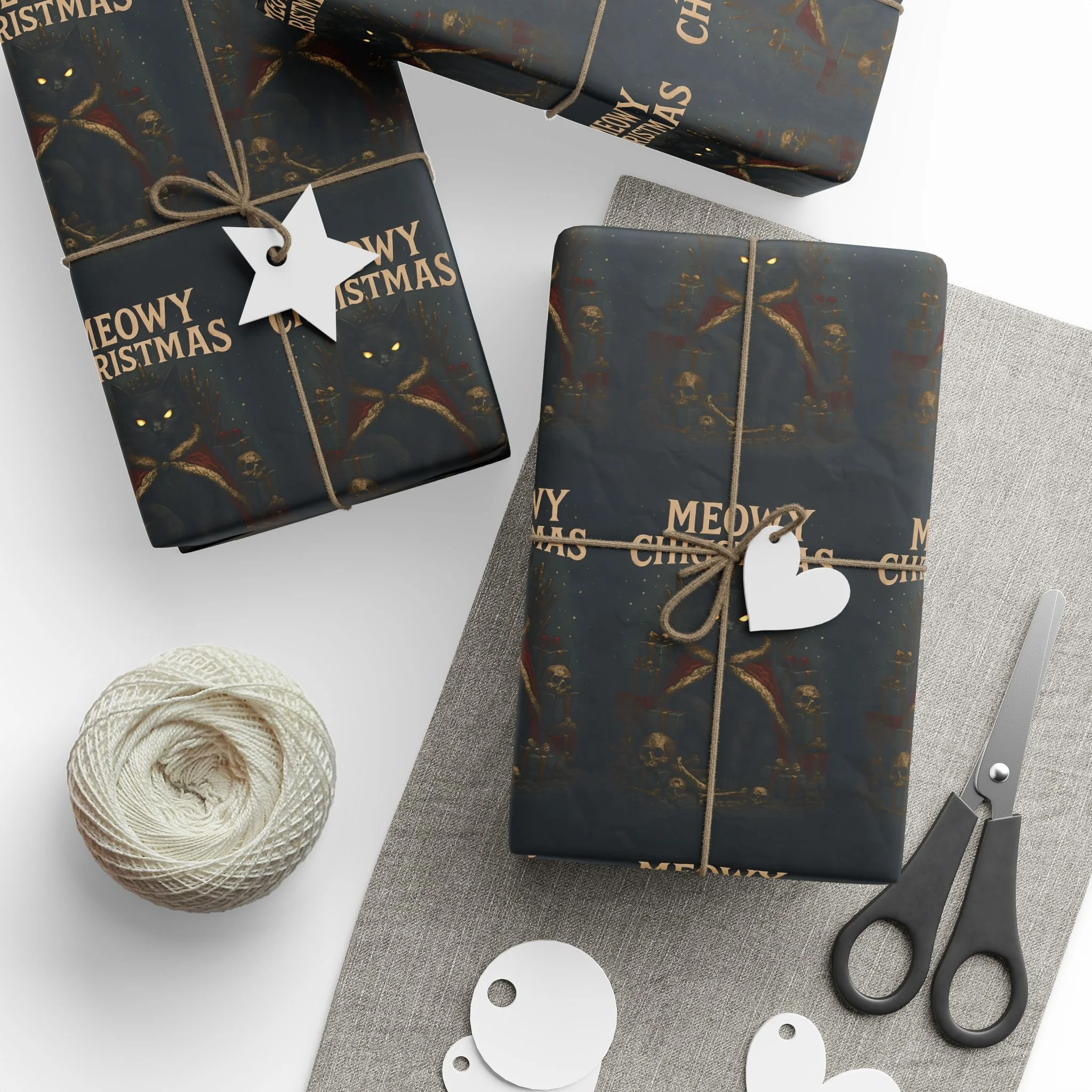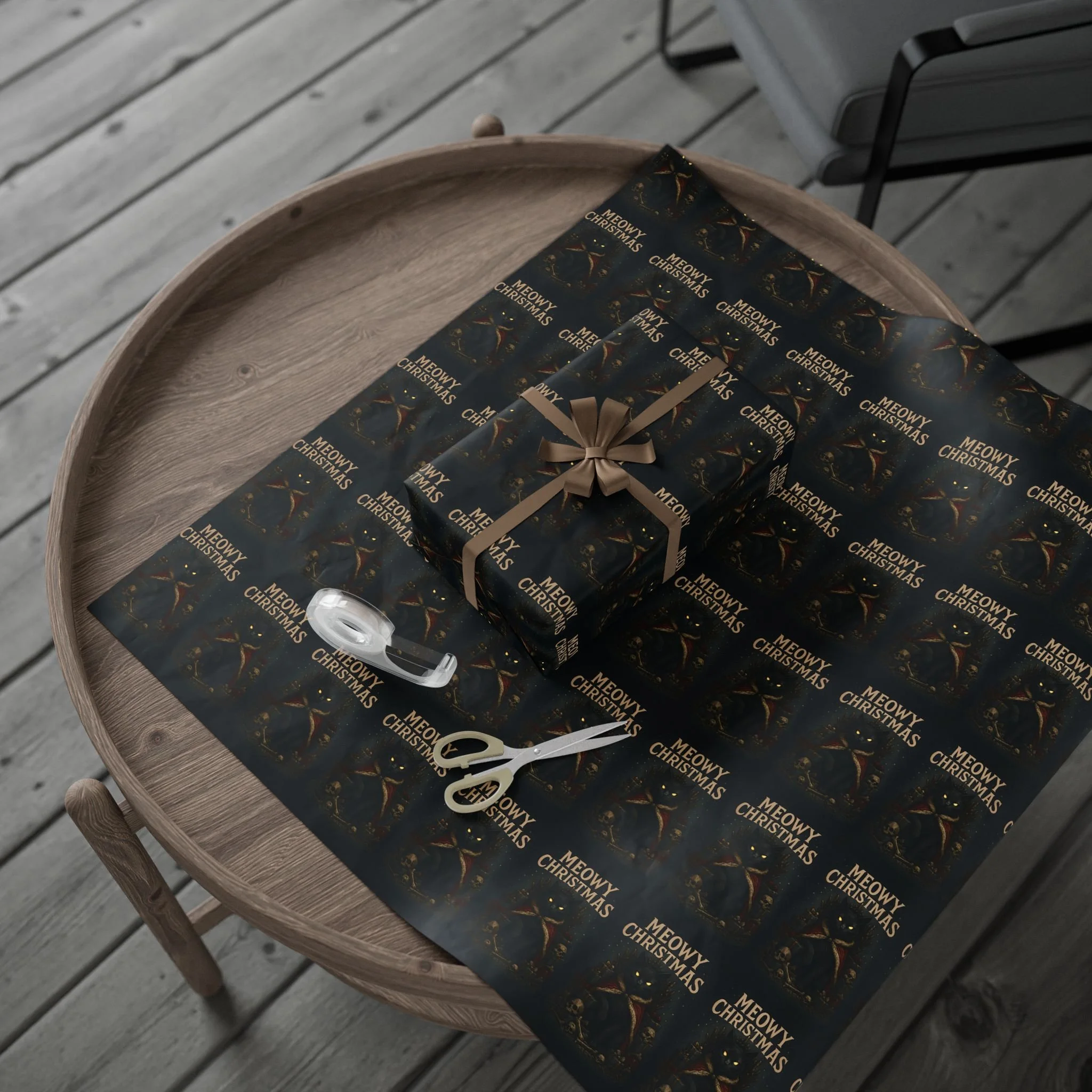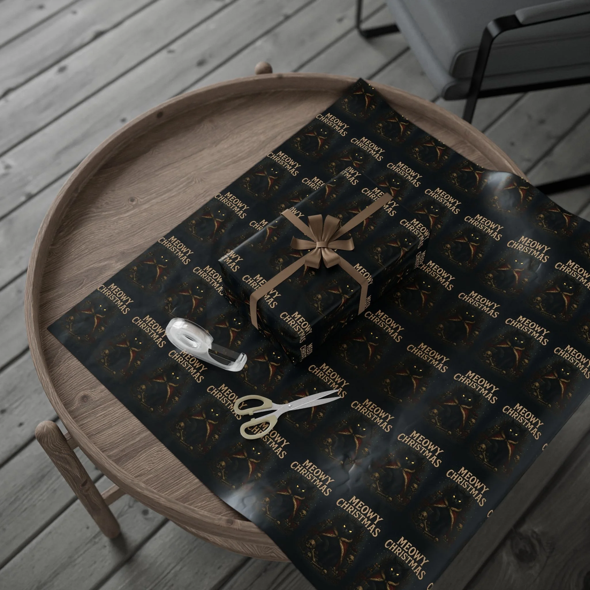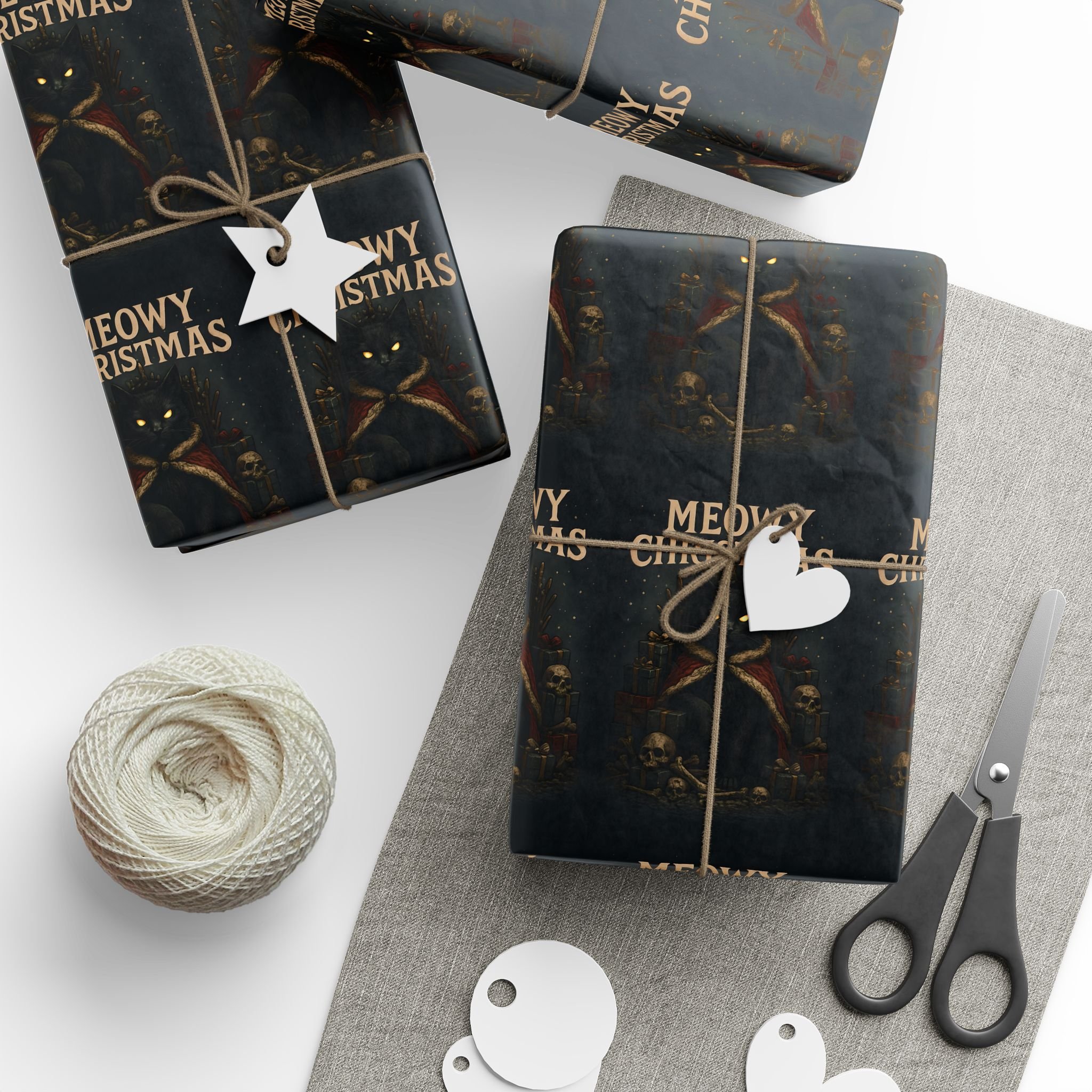 This wrapping paper brings a playful, cozy twist to holiday unwrapping. Deep, velvety blacks and warm, vintage-gold lettering set off sleepy cat illustrations wearing tiny Santa hats, creating a quietly cheeky mood that feels both nostalgic and modern. The one-sided print on 90gsm fine art paper lays smoothly around packages, and your choice of glossy or matte finish lets you dial the sheen to match the moment — a soft matte for an understated, library-like holiday or high gloss when you want the colors to pop under twinkling lights. Rolls come in three lengths to cover small treats or long, narrow parcels, and the subtle white trim with barcode is discreet at the edges. This paper fits into calm, intimate gatherings where detail and personality matter.