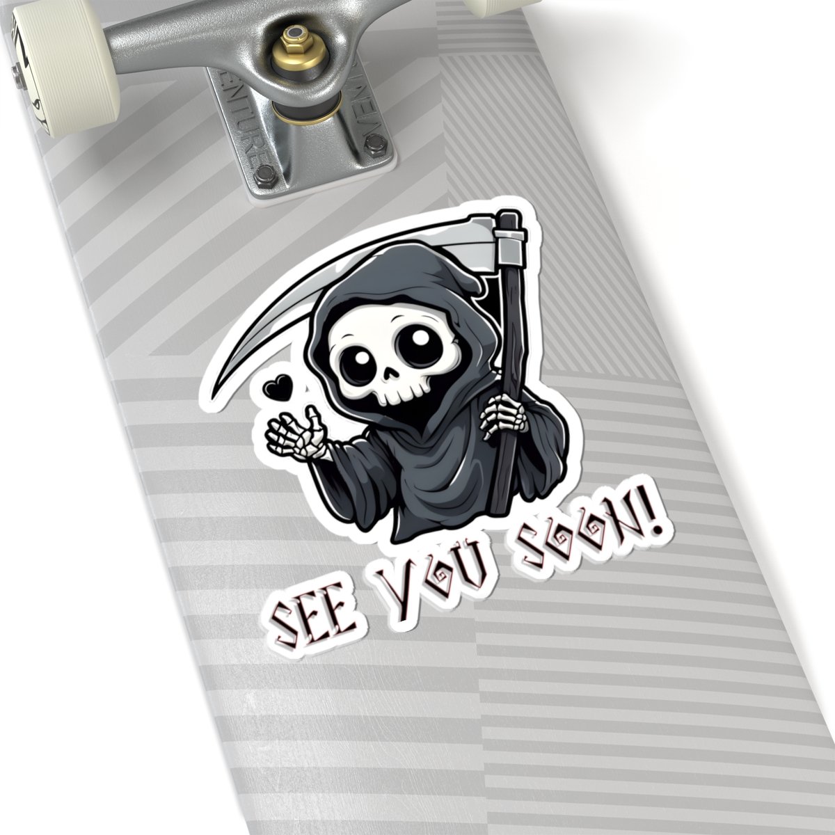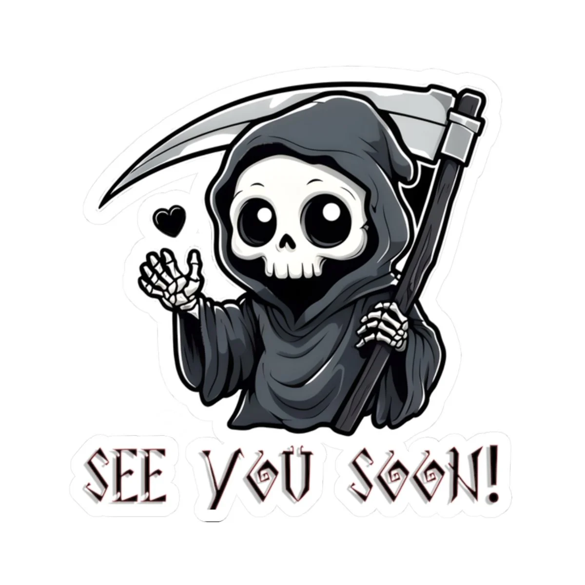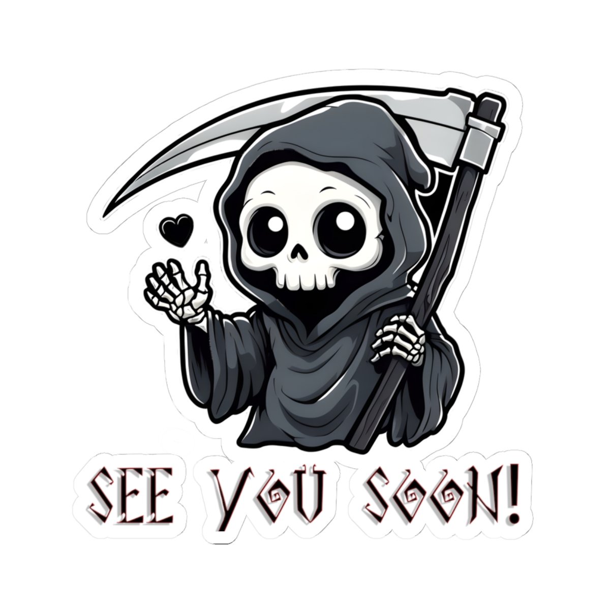 See You Soon! Grim Reaper Kiss-Cut Sticker