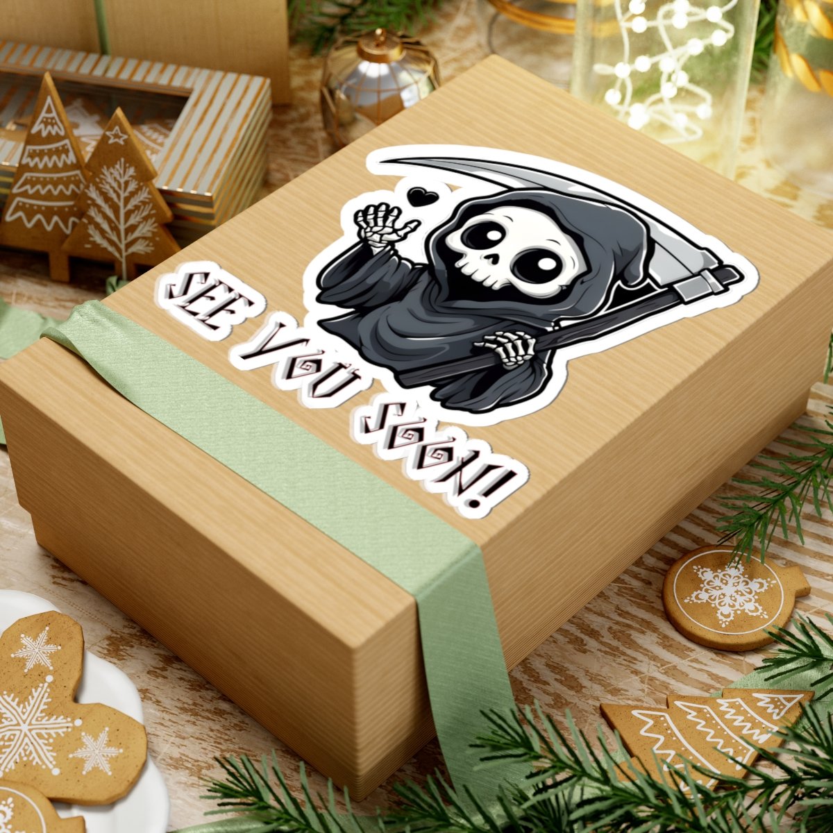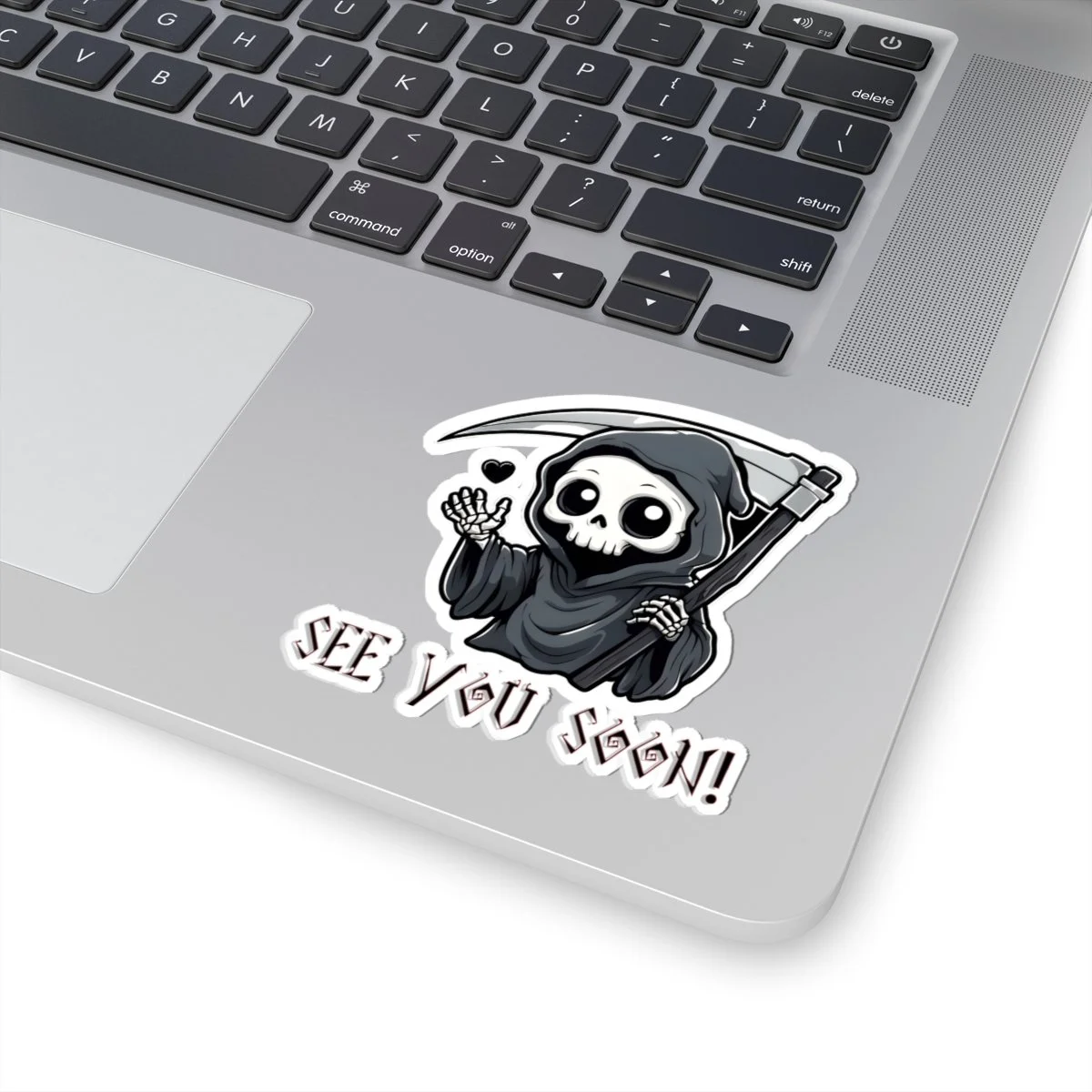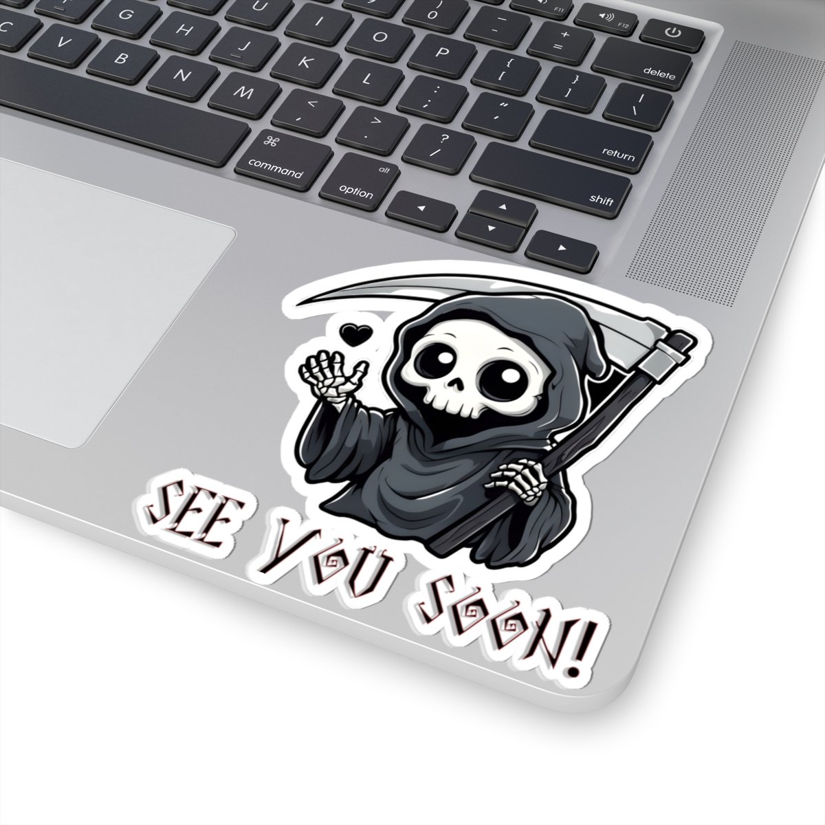 See You Soon! Grim Reaper Kiss-Cut Sticker
