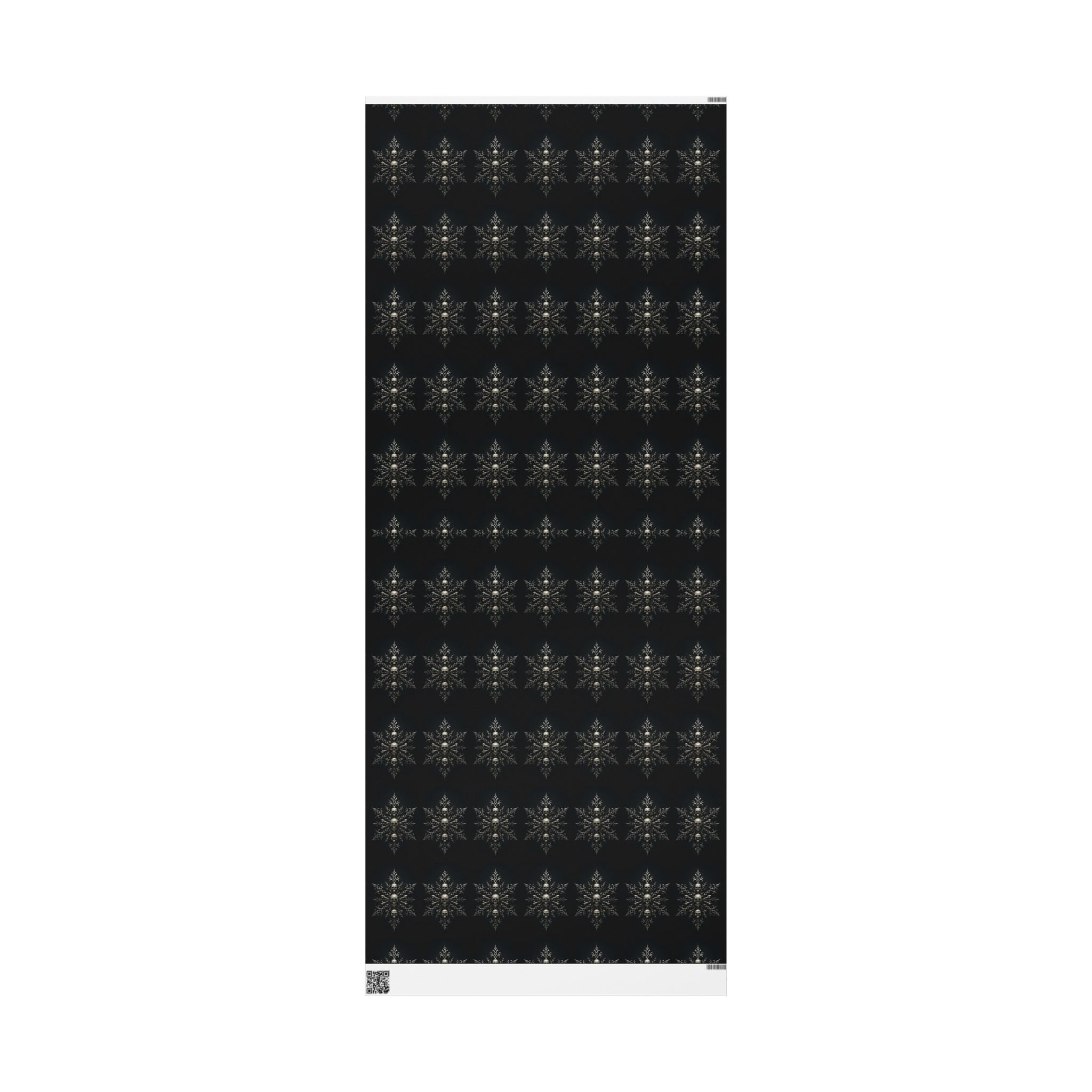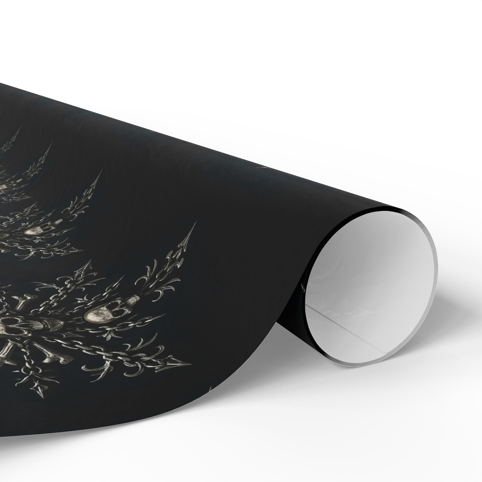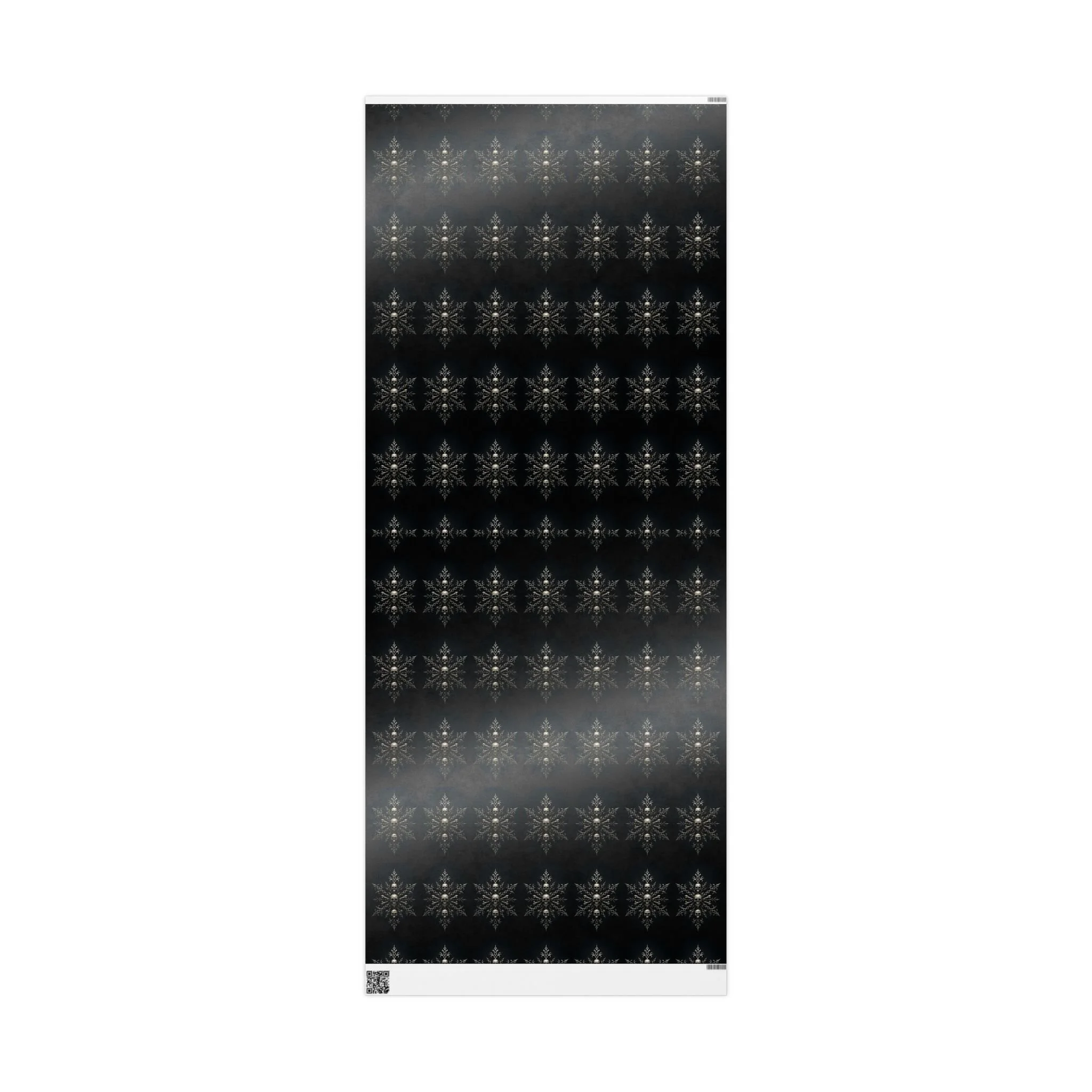 A deep, moody wrapping paper that turns gift-giving into a quiet, cinematic moment. Rich black paper printed with subtle, hand-drawn wreath motifs and delicate highlights creates an understated look that feels thoughtful rather than flashy. The single-sided print sits on smooth, fine-art paper that catches light differently depending on your choice of glossy or matte finish. Roll it out for holiday evenings, intimate birthdays, or late-night gift surprises — it slips easily into the hands of someone who prefers calm, refined aesthetics over loud patterns. The small white trim with barcode and QR code stays discreet at the roll edge, so every wrapped present looks intentional and composed.