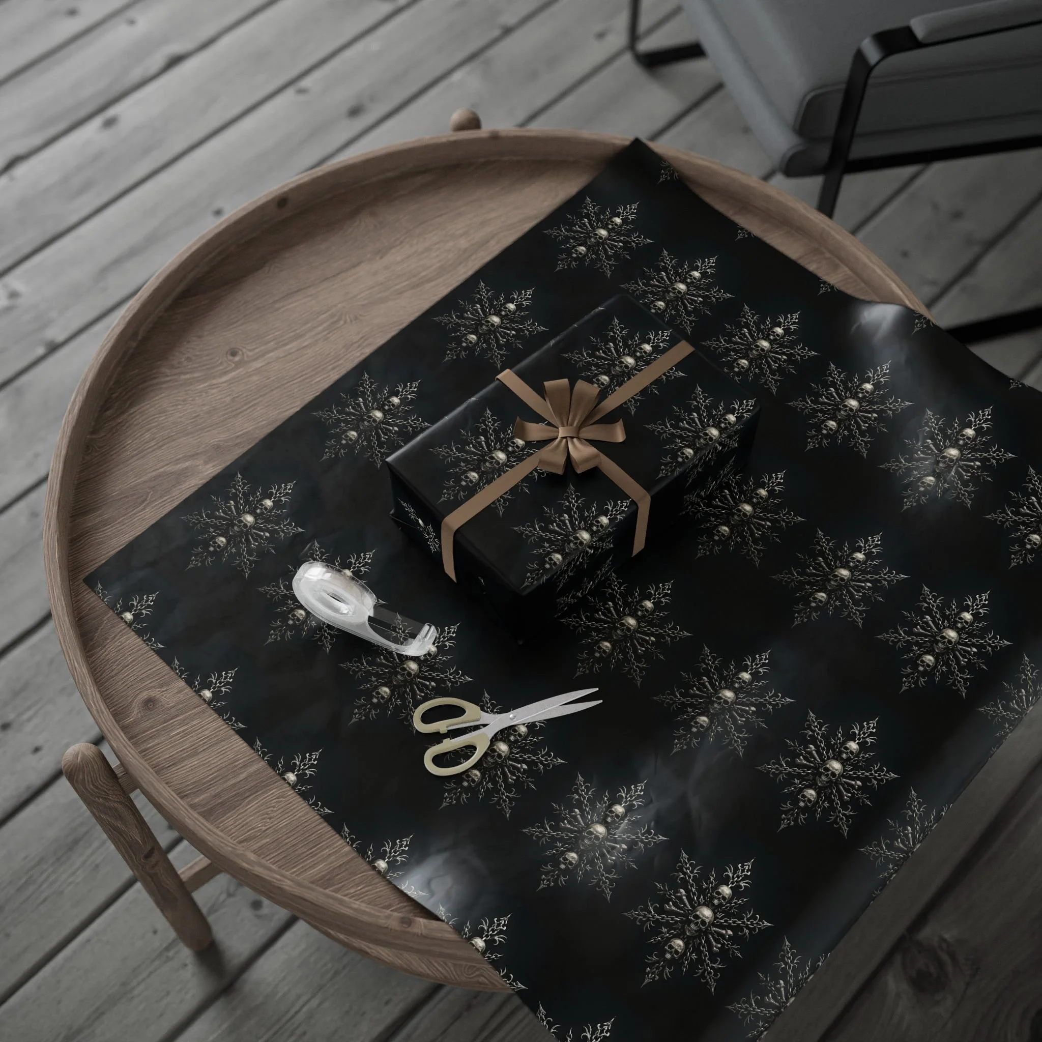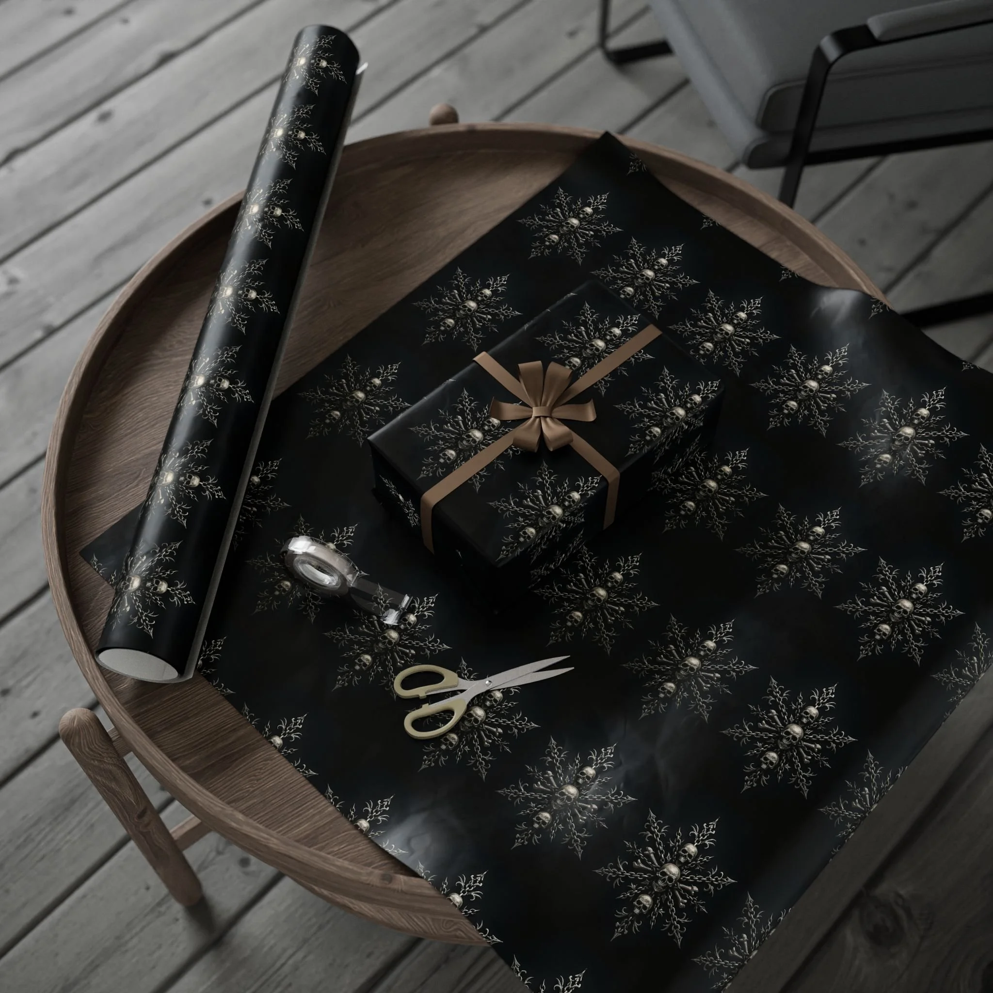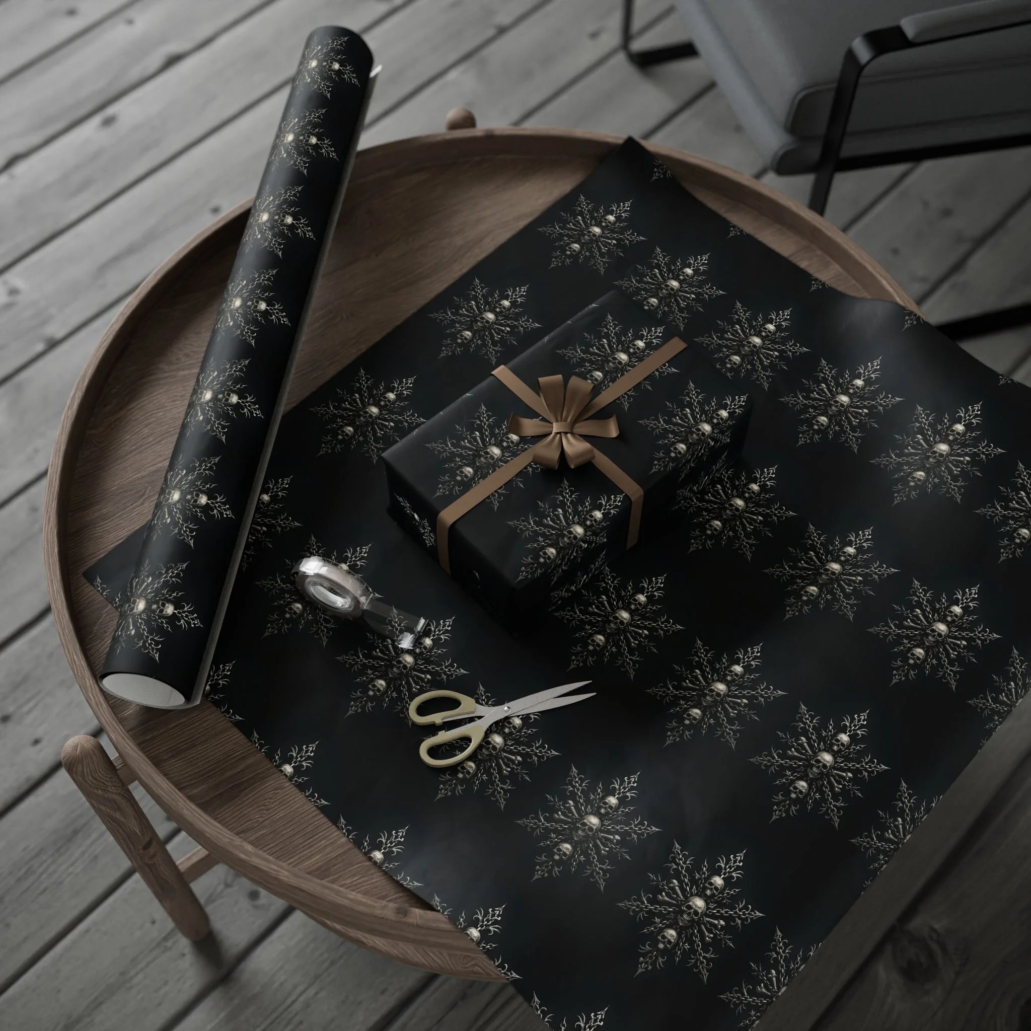 A deep, moody wrapping paper that turns gift-giving into a quiet, cinematic moment. Rich black paper printed with subtle, hand-drawn wreath motifs and delicate highlights creates an understated look that feels thoughtful rather than flashy. The single-sided print sits on smooth, fine-art paper that catches light differently depending on your choice of glossy or matte finish. Roll it out for holiday evenings, intimate birthdays, or late-night gift surprises — it slips easily into the hands of someone who prefers calm, refined aesthetics over loud patterns. The small white trim with barcode and QR code stays discreet at the roll edge, so every wrapped present looks intentional and composed.